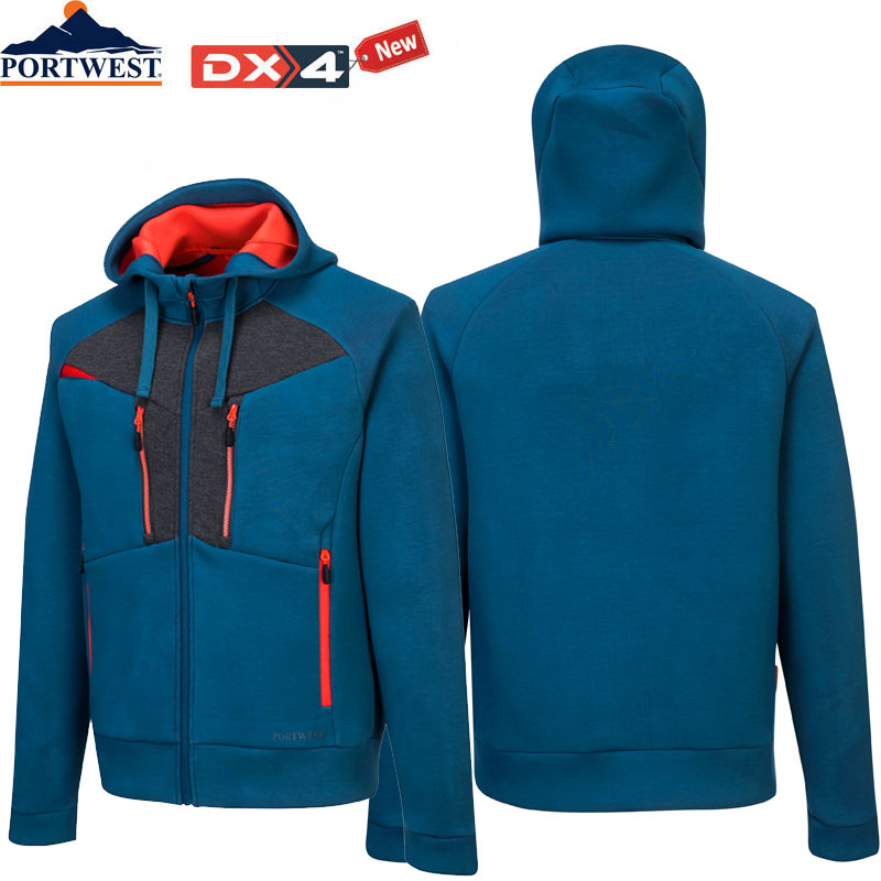 Der DX4 Hoodie mit Reißverschluss ist innovativ. Konstruiert mit einem 2 Lagen Gewebe, der leichte Wärme und uneingeschränkte Bewegungsfreiheit bietet. Zwei Brusttaschen mit Reißverschluss und seitliche Eingrifftaschen bieten viel Stauraum. Der durchgehende Reißverschluss an der Vorderseite bietet Bequemlichkeit. Der Gummizug garantiert einen guten Sitz bei allen Bewegungen. Die verstellbare Kapuze sorgt für einen guten Schutz. Eine zeitgemäße Option für den modernen Arbeiter.