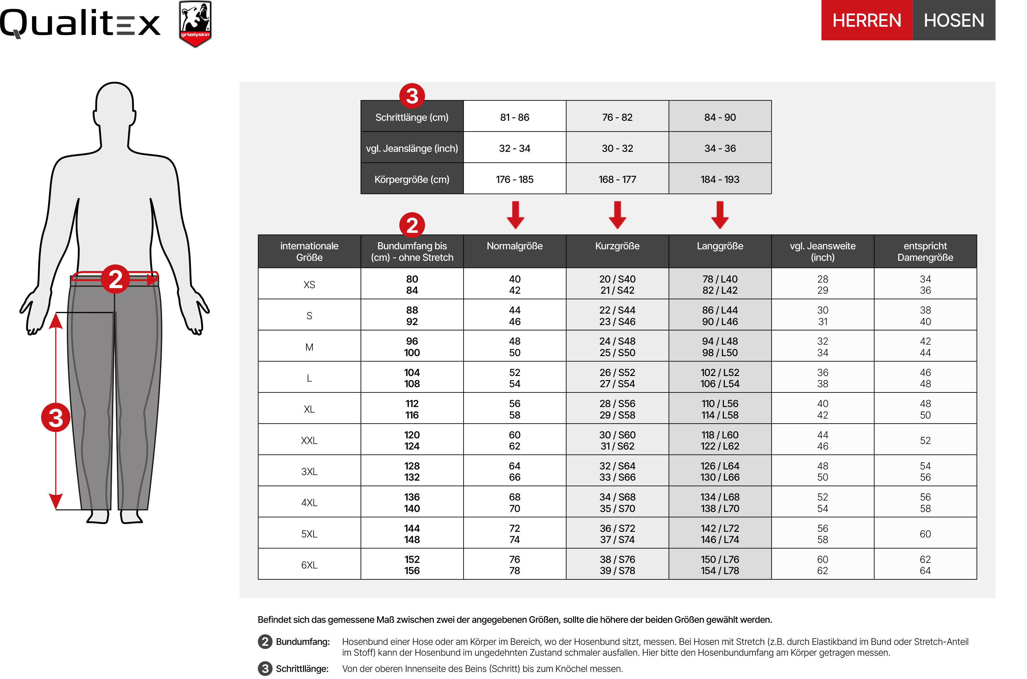 Kurz: 42 - 64, Normal: 42 - 64, 66 - 68 (+25% ÜGZ), 70 - 72 (+30% ÜGZ), Lang: 42 - 64