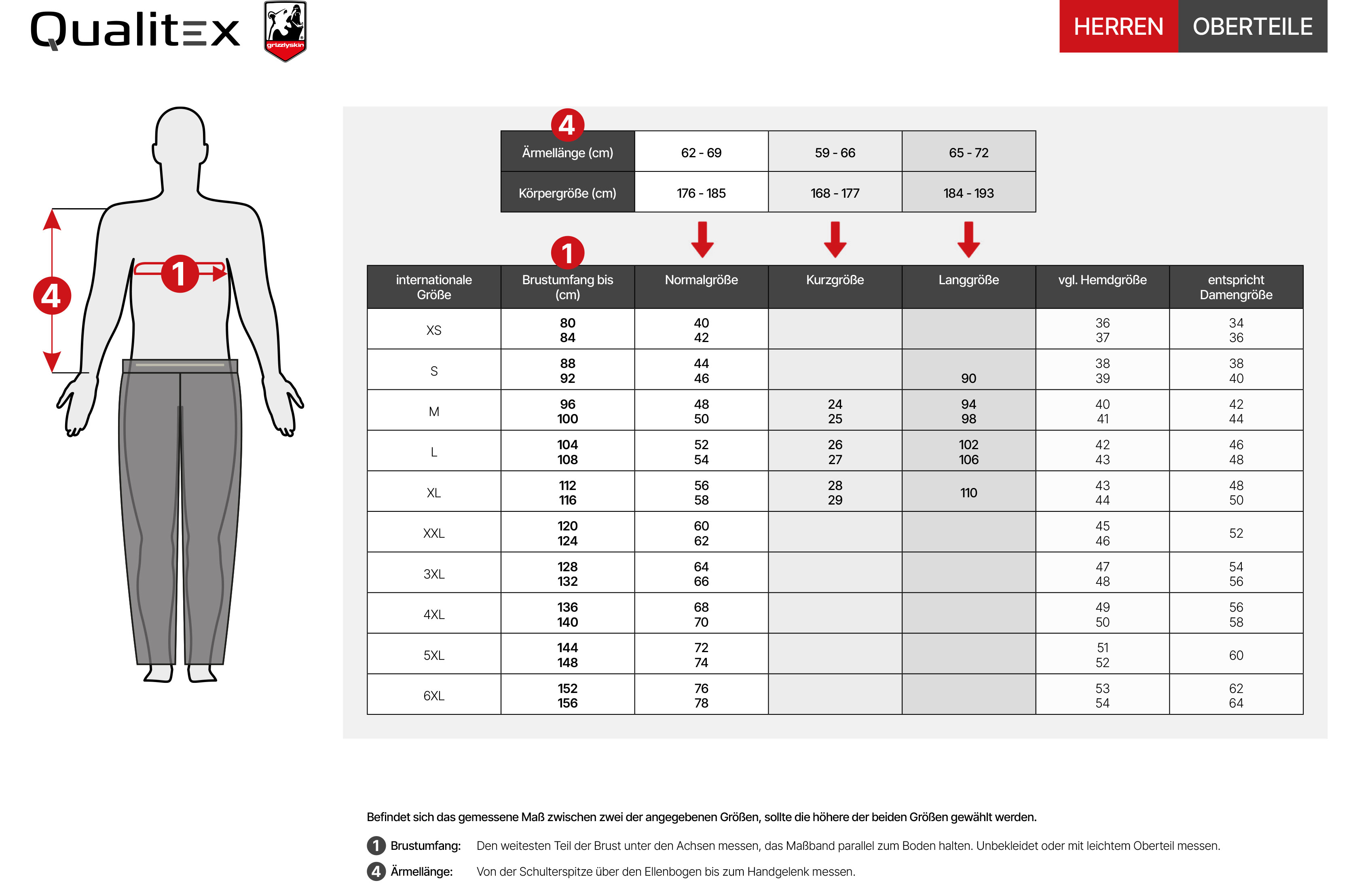 | Größen: | S - 3XL, 4XL (+25%ÜGZ), 5XL (+30%ÜGZ) |
