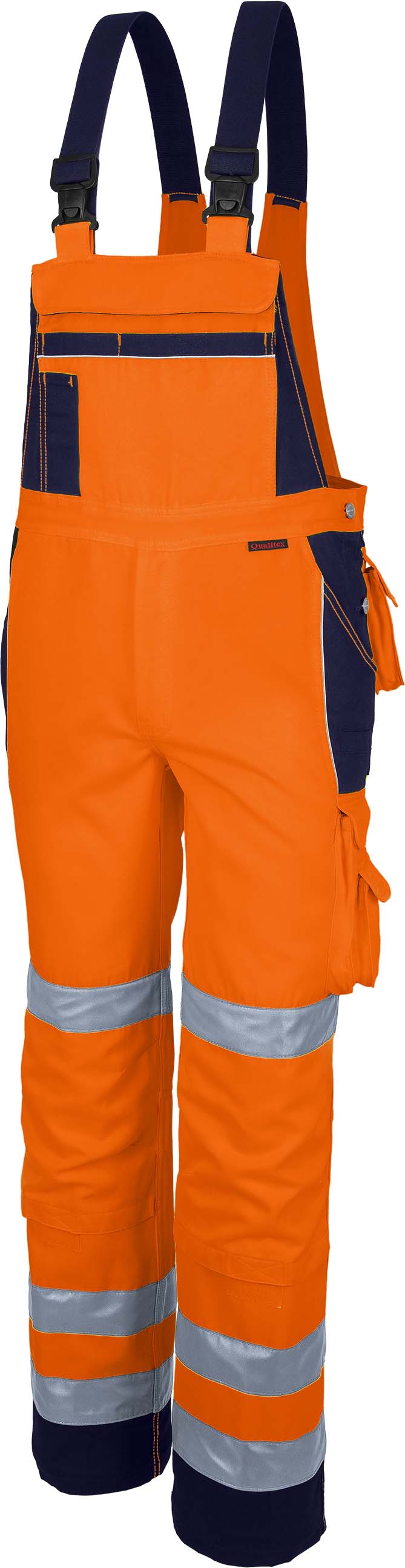 Qualitex Warnschutzlatzhose "Pro", die zertifizierte Latzhose gibt Ihnen die nötige Sicherheit im Arbeitsalltag. Modisch in Kontrastfarbe abgesetzt macht sie zudem eine gute Figur.