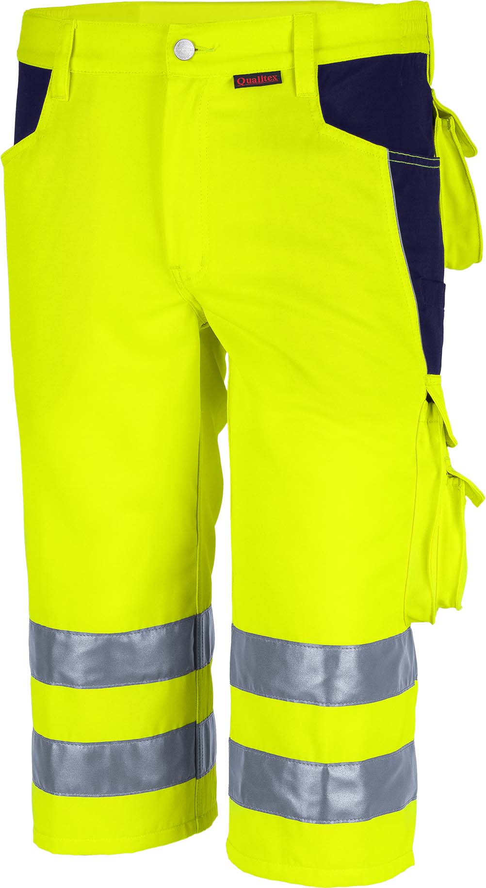 Qualitex Warnschutzshorts "Pro" ist mit ihren Kontrastelementen im Farbton Marine, nicht nur eine Warnschutzhose, sondern gleichzeitig auch moderne Berufsbekleidung.