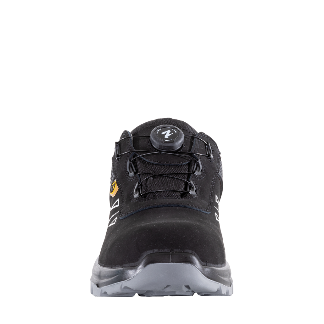Der Schuh verfügt über einen Zehenschutz aus rostfreiem Stahl oder aus UV geschütztem Kunststoff. Er verfügt über einen schützenden Fersenabschluss. Die Sohle schützt antistatisch vor Stromschlägen und durch erhöhte Haftung vor Ausrutschern. |