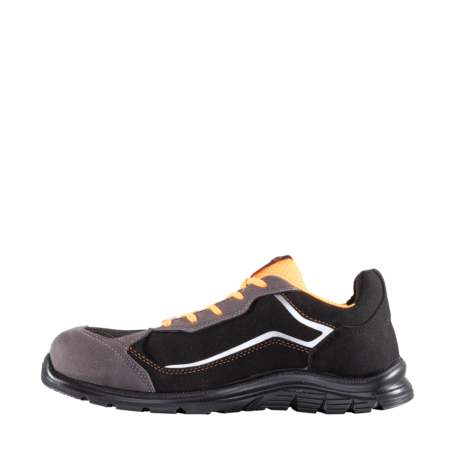 Der Schuh verfügt über einen Zehenschutz aus rostfreiem Stahl oder aus UV geschütztem Kunststoff. Er verfügt über einen schützenden Fersenabschluss. Die Sohle schützt antistatisch vor Stromschlägen und durch erhöhte Haftung vor Ausrutschern. |